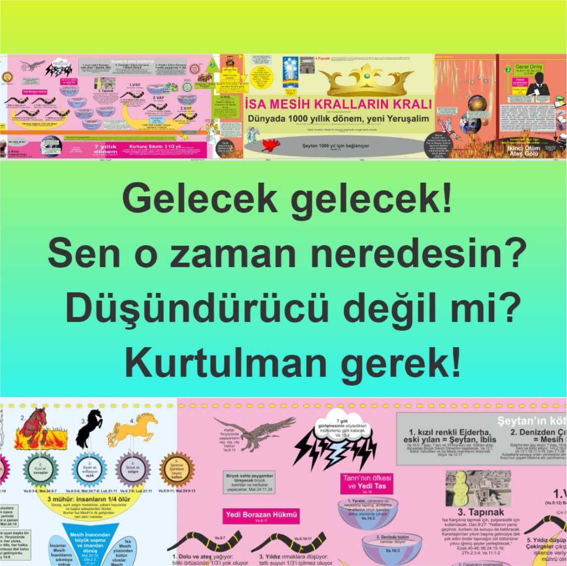 Gelecek: inanlıların dünyadan alınması, 7 korkunç öfke yılı, doğruluk, İsa Mesih’in geri gelmesi